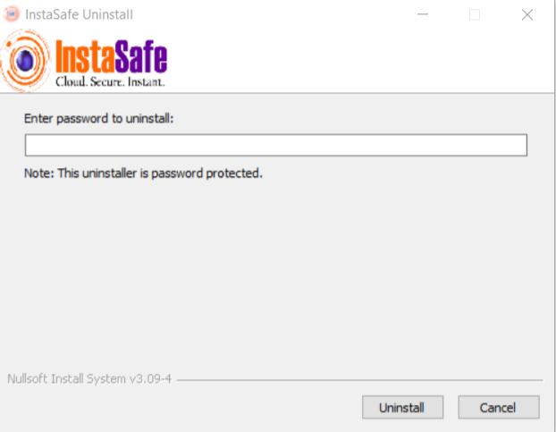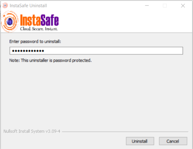 The InstaSafe Windows Agent will be successfully uninstalled from the system.